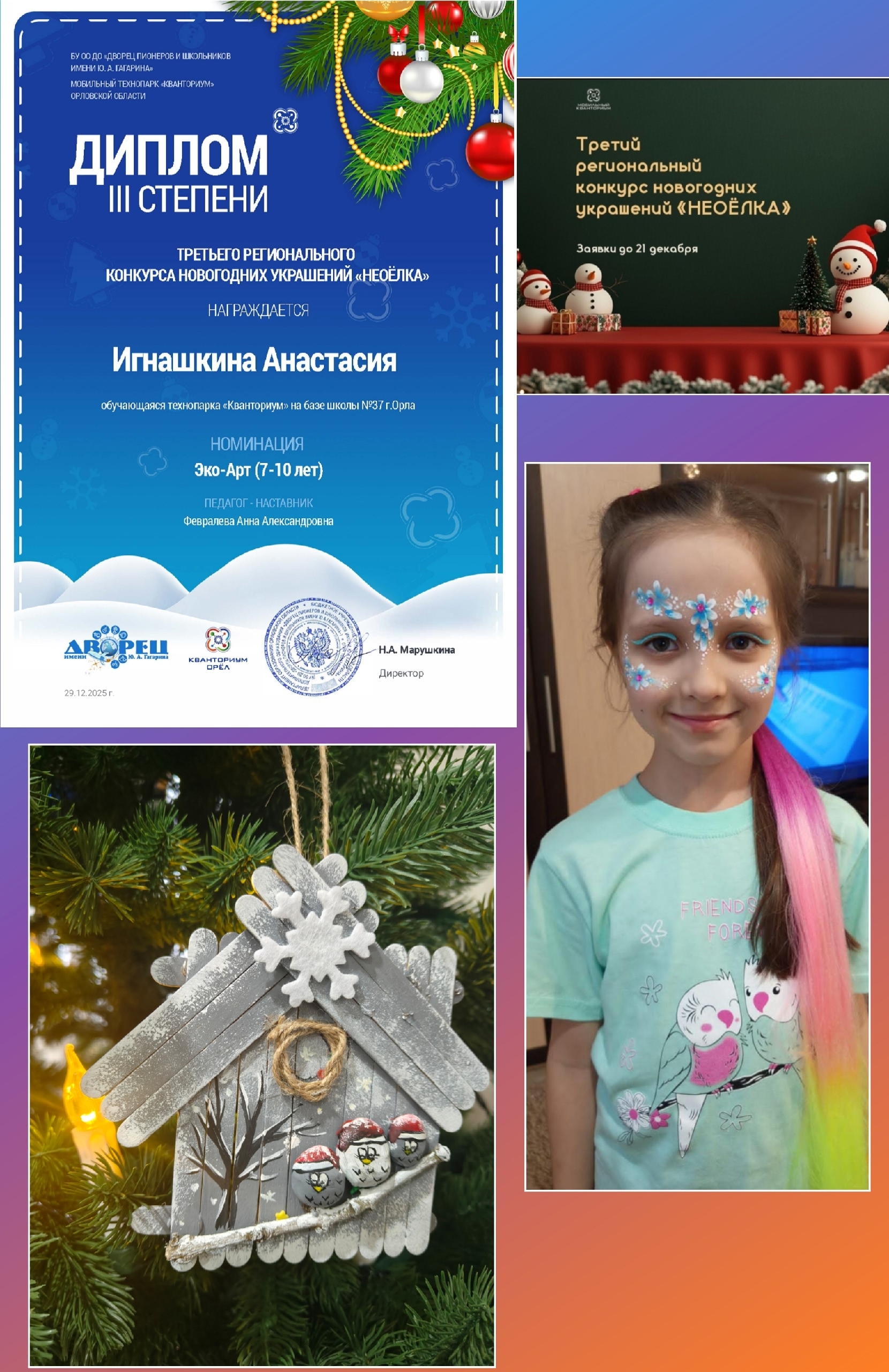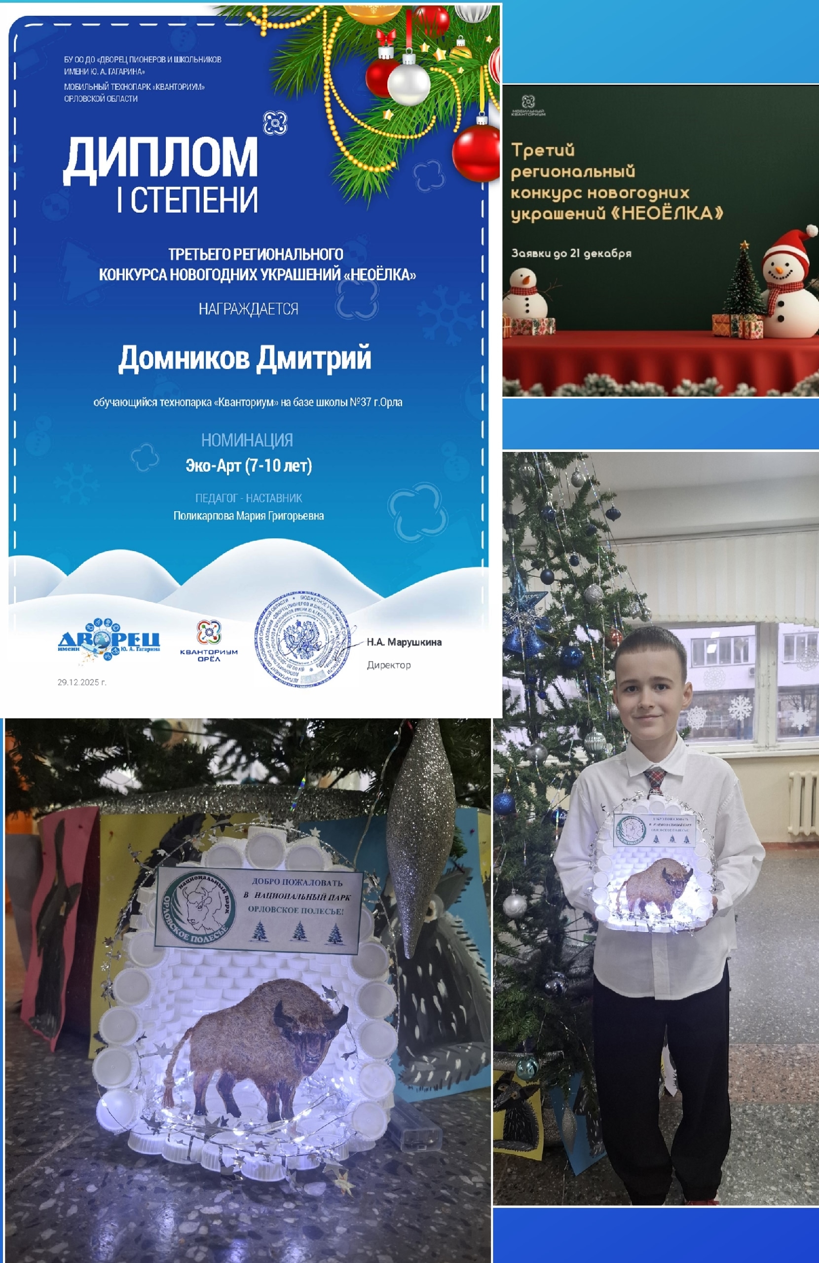 Подведены итоги Третьего регионального конкурса новогодних украшений «НЕОЁЛКА» В конкурсе «НЕОЁЛКА» приняли участие дети из школ и учреждений дополнительного образования Кромского, Орловского, Мценского районов, а также Орла и Севастополя. Всего на оценку жюри было представлено 32 работы в номинациях: «Эко-Арт», «Кибер-игрушка», «Умный свет». Поздравляем юных дизайнеров и робототехников с заслуженными победами!